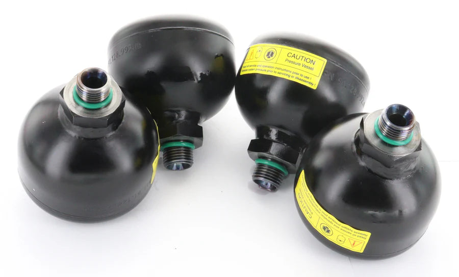 This item is new replacement suspension McLaren accumulators for the 650S, 720S, 750S, 765LT and 570S. We offer these as a package of 4 , 2 or as single accumulators. To do a full refresh of your hydraulic suspension system your vehicle will require 4 accumulators.